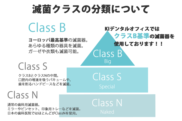 さらに、滅菌レベルの中で最も厳しいとされるヨーロッパ規格「クラスB」滅菌器を導入し、あらゆる器具を確実に滅菌。