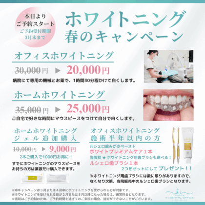 皆さまの新しい1歩を応援するためにケーアイデンタルオフィスでは、春のホワイトニングキャンペーンを実施いたします!!